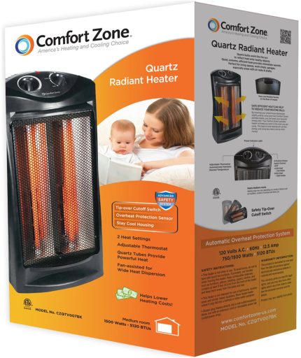 Comfort Zone CZQTV007BK Radiant Quartz Tower Heater, Black