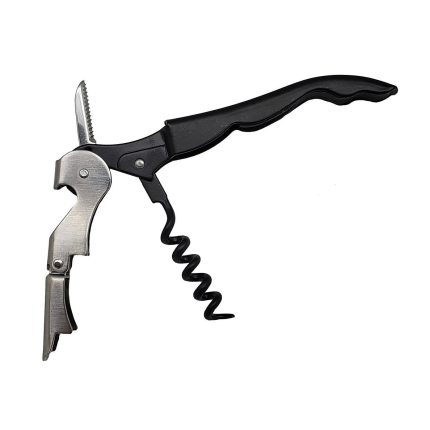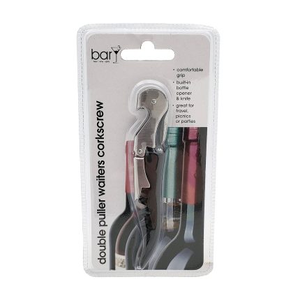 BarY3 BAR-0496 Double Puller Waiter’s Corkscrew, Black/Silver