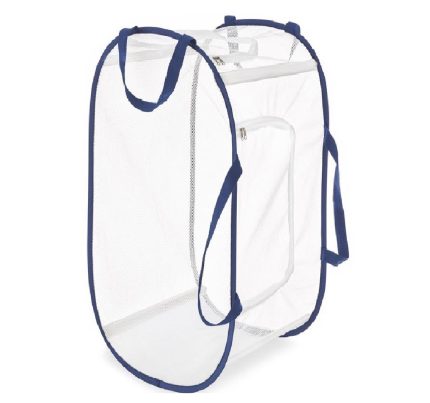 Whitmor 5588-7485-WNVY Collapsible Hamper, Blue/White