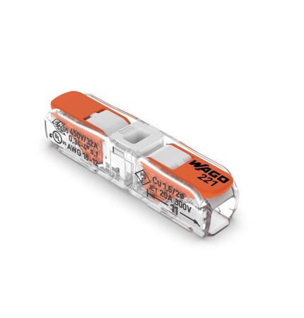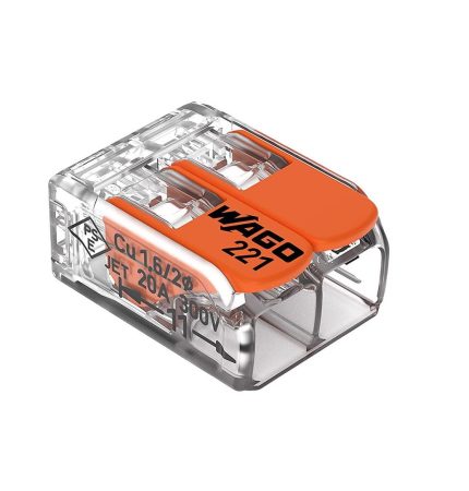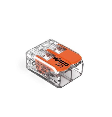 Wago 221-412/996-010 2 Port Lever Wire Connector, Clear/Orange