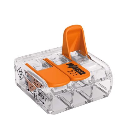 Wago 221-413/996-010 3 Port Lever Wire Connector, Clear/Orange