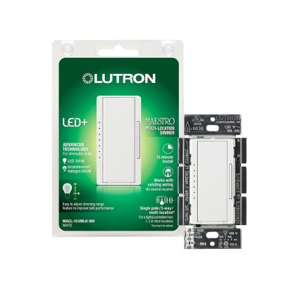 Lutron MACL-153MLRHW-WH Maestro Dimmer Kit, 1.25 AMP, 120 Volt, 150 Watts