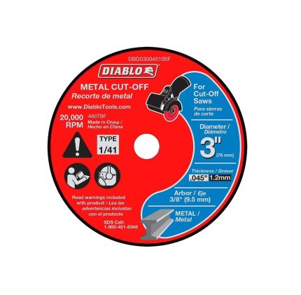 Diablo DBD030045105F Cut-Off Disc, Aluminum Oxide Abrasive, 3 inch