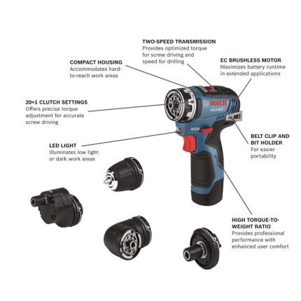 Bosch GSR12V-300FCB22 Chameleon Cordless 5-In-1 Drill, 12 V