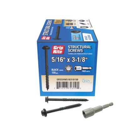 Grip-Rite GRSSHW516318150 Hex Washer Head Structural Screws, 3-1/8 Inch