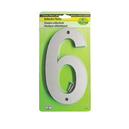 Hy-Ko 30806 Reflective Nail-On Number 6, Black/Silver