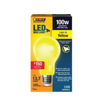 Feit Electric A19/BUG/LED/BX LED Specialty LED Bug Light, Yellow, 60 W