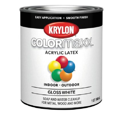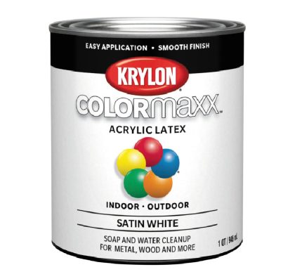 Krylon K05612007 COLORmaxx Acrylic Latex Exterior Paint, White, 8 Ounce