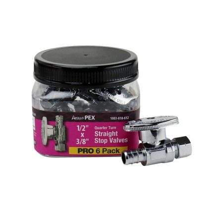 Apollo APXVS1238C6JR Straight Stop Valve, 1/2 Inch X 3/8 Inch, Brass