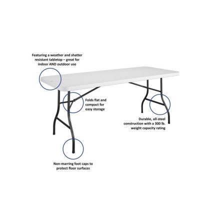 Cosco 14-164-WSP1 Rectangular Folding Table, 72 inch, White