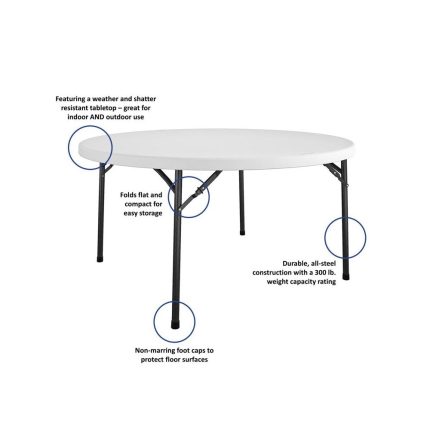 Cosco 14-160-WSP1A Round Folding Table, 60 inch, White