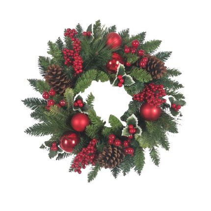 Santas Forest 38601 Christmas Wreath Holly Berry, Green/Red