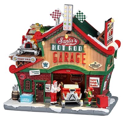 Lemax 25863 Christmas Santa Hot Rod Garage, Resin