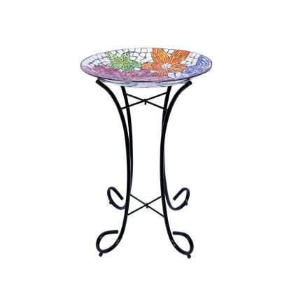 Alpine HMD106A Floral Bird Bath with Stand, Multicolored