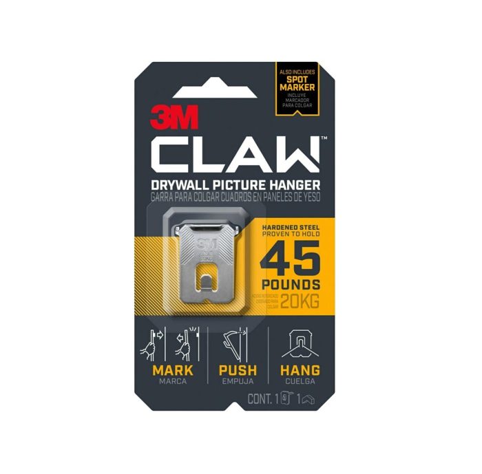 Hardened steel – claws lock into drywall anywhere