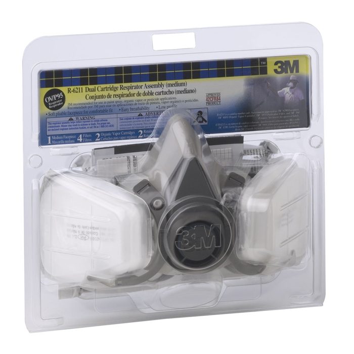 Contains: 1 each ‘3M’ Half Facepiece 6300 , 1 pair of ‘3M’ Organic Vapor Cartridge 6001, 2 pair of ‘3M’ Particulate Filter 5P71, P95 and 1 pair of 3M Filter Retainer 501