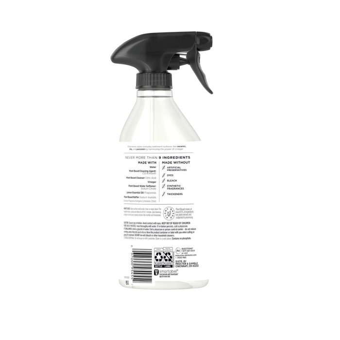 Fast-acting formula removes hard water residues from bathroom surfaces