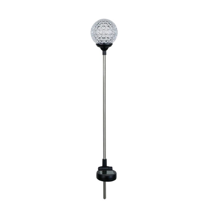 Highlights:Color: Black/SilverMaterial: AcrylicHeight: 33 inchDesign: Mystic BallSolar Power: YesColor changing LED light stakes create a vibrant disp
