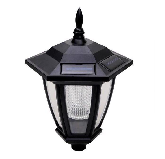 Versatile lamp has an LED light powered by solar energy to keep your outdoor space lit up all night