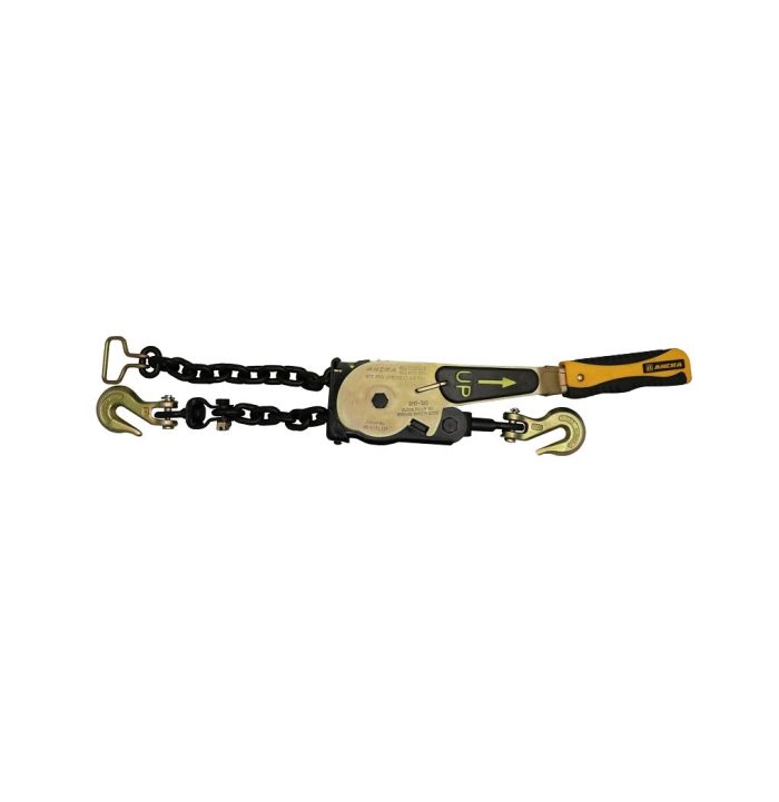 Highlights:Chain Grade : G70Chain/ Rope Size : 5/16 inches to 3/8 inchesColor : Blue/YellowFinish : ZincHandle Type : Extra-Long Molded Grip RatchetMa