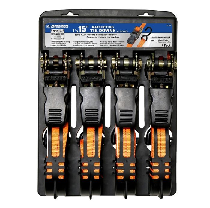 Highlights:Material: PolyesterAdjustment Type: RatchetColor: Bright OrangeNumber in package: 4End Material: SteelEnd Type: S-HookLength: 15Width: 1Wor