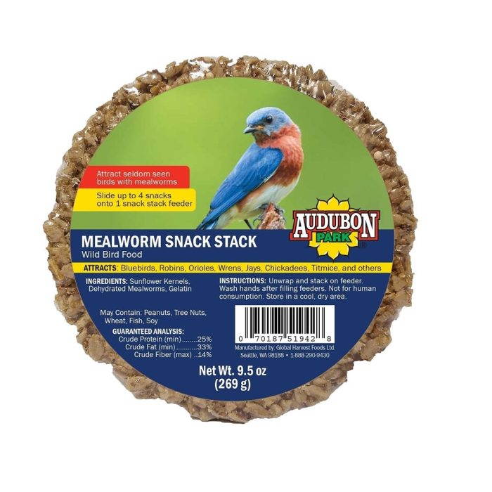 Highlights:Size: 9.5 OunceType: Snack StackAttracts: Bluebirds Robins Orioles Wrens Jays Chickadees Titmice’sIngredients: Sunflower Kernels Dehydrated