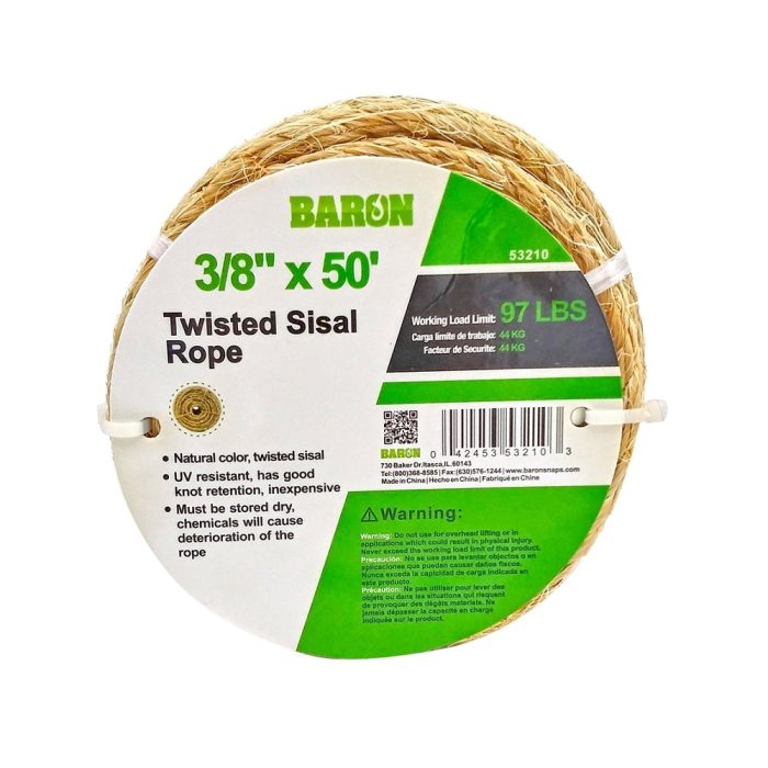 Baron 53210 Twisted Sisal Rope, 3/8 Inch x 50 Feet, Natural