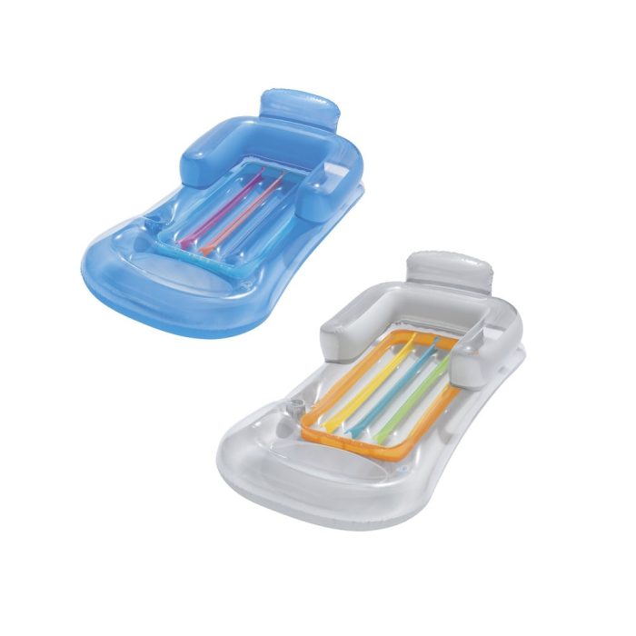 Highlights:Color: AssortedMaterial: VinylLength: 63.5 inchWidth: 33 inchInflatable: YesStyle: Designer Fashion LoungeTransparent colored PVC with colo