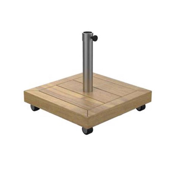 Features stabilizing holder that guides the umbrella pole into a centered up right position