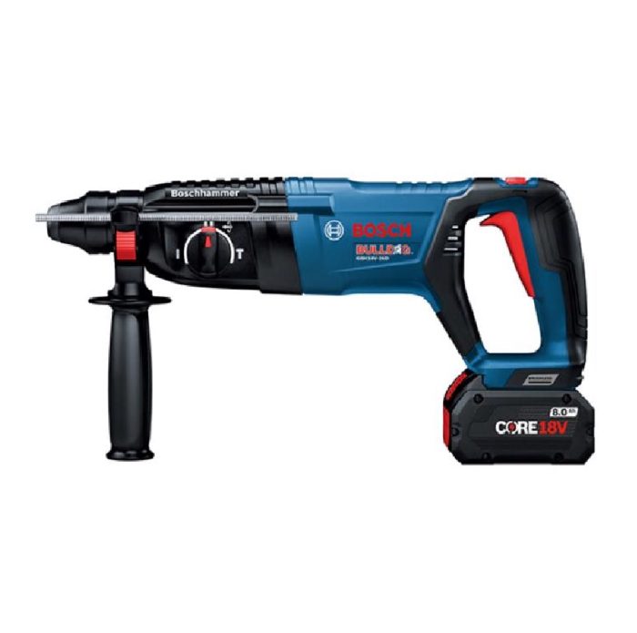 Includes:(1) GBH18V-26D 18V EC Brushless SDS-plus Bulldog 1 In. Rotary Hammer, (2) GBA18V40 18V CORE18V Lithium-Ion 4.0 Ah Compact Batteries, (1) 18V Charger, (1) Auxiliary Handle, (1) Depth Gauge, (1) Carrying Case