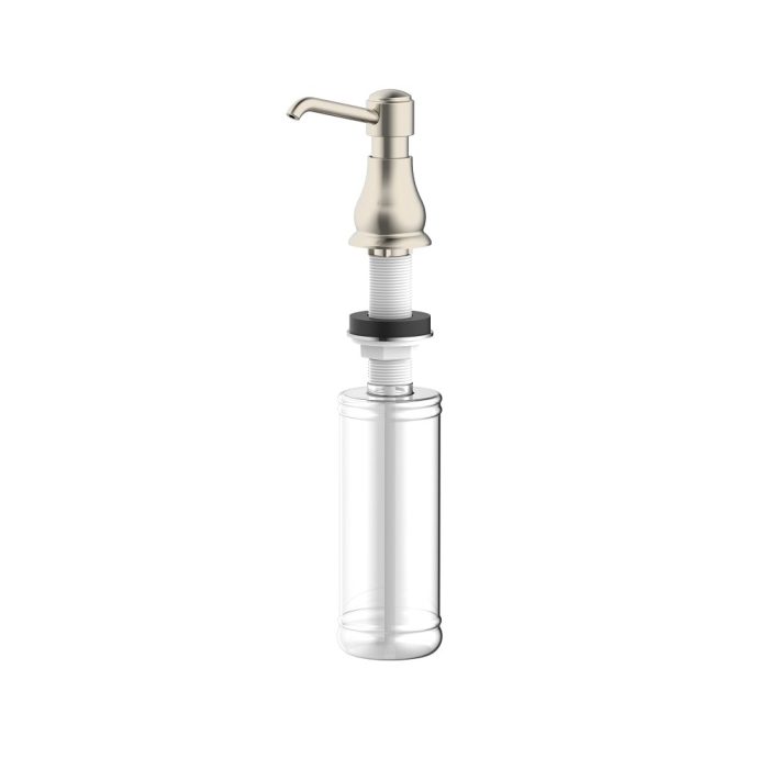 Highlights:Capacity: 11 ozColor: Brushed NickelFinish: Brushed NickelLength: 4.13 inchMaterial: PEMounting Type: Top mountedOperation Modes: PressResi