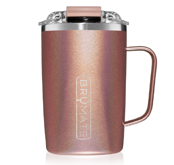 Highlights:Material: Alloy/Stainless SteelColor: Glitter Rose GoldCapacity: 16 oz.Width: 4.5 inchHeight: 5.5 inchStackable: YesBevLock leakproof locki