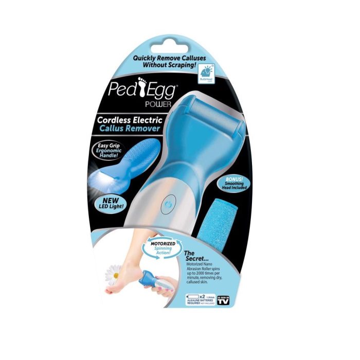 Highlights:Color: Blue/WhiteEasy grip ergonomic andleMotorized spinning sctionLED lightBonus smoothing head includuedQuickly removes calluses without