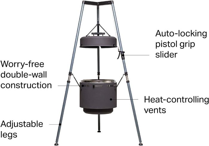 Adjust the included coal pan to your desired pan height to one of nine available heat levels designed into our spiral rail system and remove the coal pan completely to dispose of ashes or to remove hot coals to cool down for fast transportation