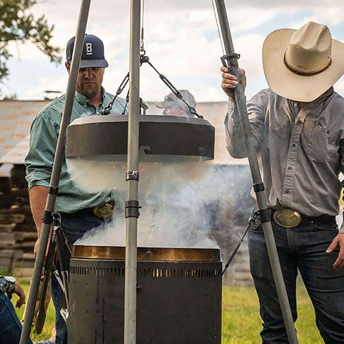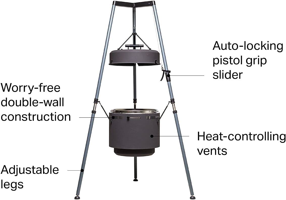 Located on the bottom of the lid, the hanging hook allows you to easily and safely suspend meat, veggies or a dutch oven over an open flame