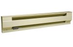 The Cadet Electric Baseboard heater utilizes convection to circulate air and provide efficient warmth. Typically installed under a window, the cool air falls from the window area as the warm air rises from the heater, causing the air to tumble gently throughout your room. The quiet operation and low cost installation make it a perfect choice for a bedroom or nursery. Rugged steel construction, with powder coated paint for a durable, premium finish. Installation is easy with a pre-punched case at 1 in. intervals, and wiring is available at either end. A thermostat is required.