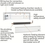 Introducing the new EBHN Hydronic Baseboard with the lowest surface temperatures available and even better reliability and product life! Cadet’s premier hydronic baseboard line is recommended for nurseries and bedrooms, and for people with severe allergies. While Softheat offers everyone a comfortably warm room, it was specifically designed to reduce the effects of indoor allergens, compared to other heating systems. Additional benefits include lower operating and surface temperatures and whisper quiet operation. The Softheat hydronic baseboard uses a non-toxic, non-hazardous circulating heat transfer fulid to provide steady, uniform warmth with longer heat retention and minimal temperature variation. No plumbing necessary! Cadet recommends a wall-mounted thermostat for optimum performance, or you may prefer the convenience of an optional double pole field mount built-in thermostat kit.