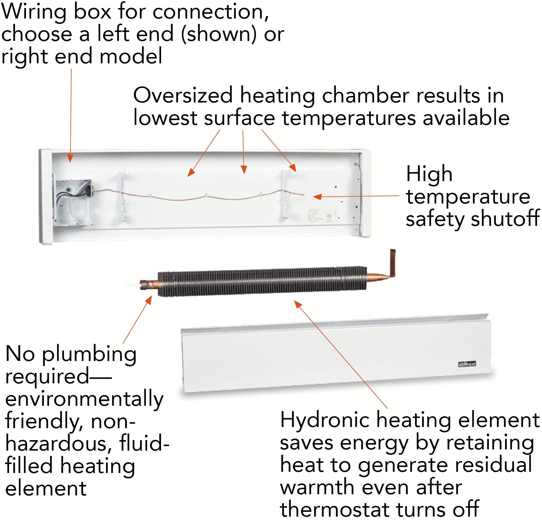 Introducing the new EBHN Hydronic Baseboard with the lowest surface temperatures available and even better reliability and product life! Cadet’s premi