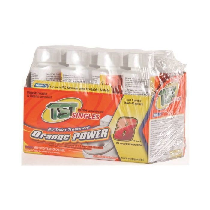 Highlights:Size: 4 ozColor: OrangeContainer Type: BottleOdor/ Scent: Fresh CitrusPackage Type: BottleEliminates odors and breaks down waste in the RV