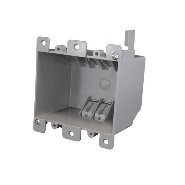 Highlights:Material: PVCColor: GrayWork Style: Old WorkCapacity: 25 cubic inchesShape: RectangleNumber of Gangs: 2 gangWidth: 4 inchesHeight: 3.125 in