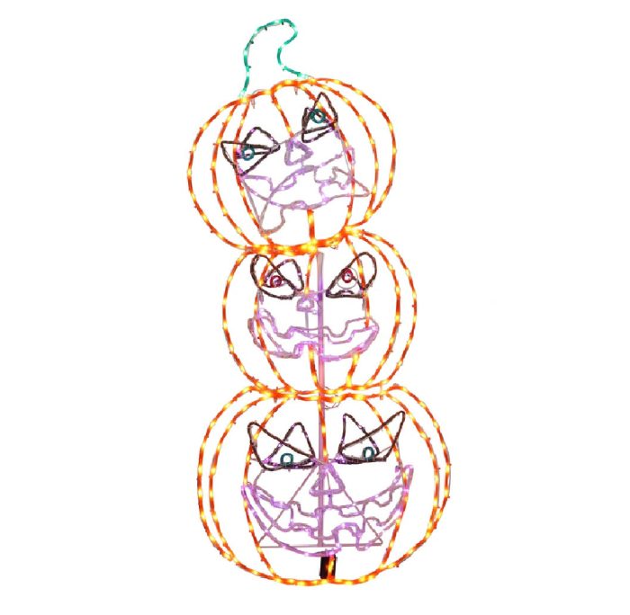 Highlights:Halloween Motif: PumpkinsLight Features: Color ChangingWidth: 8 inchLength: 22 inchHeight: 48 inchPower Source: Plug-InBulb Type: RiceAnima