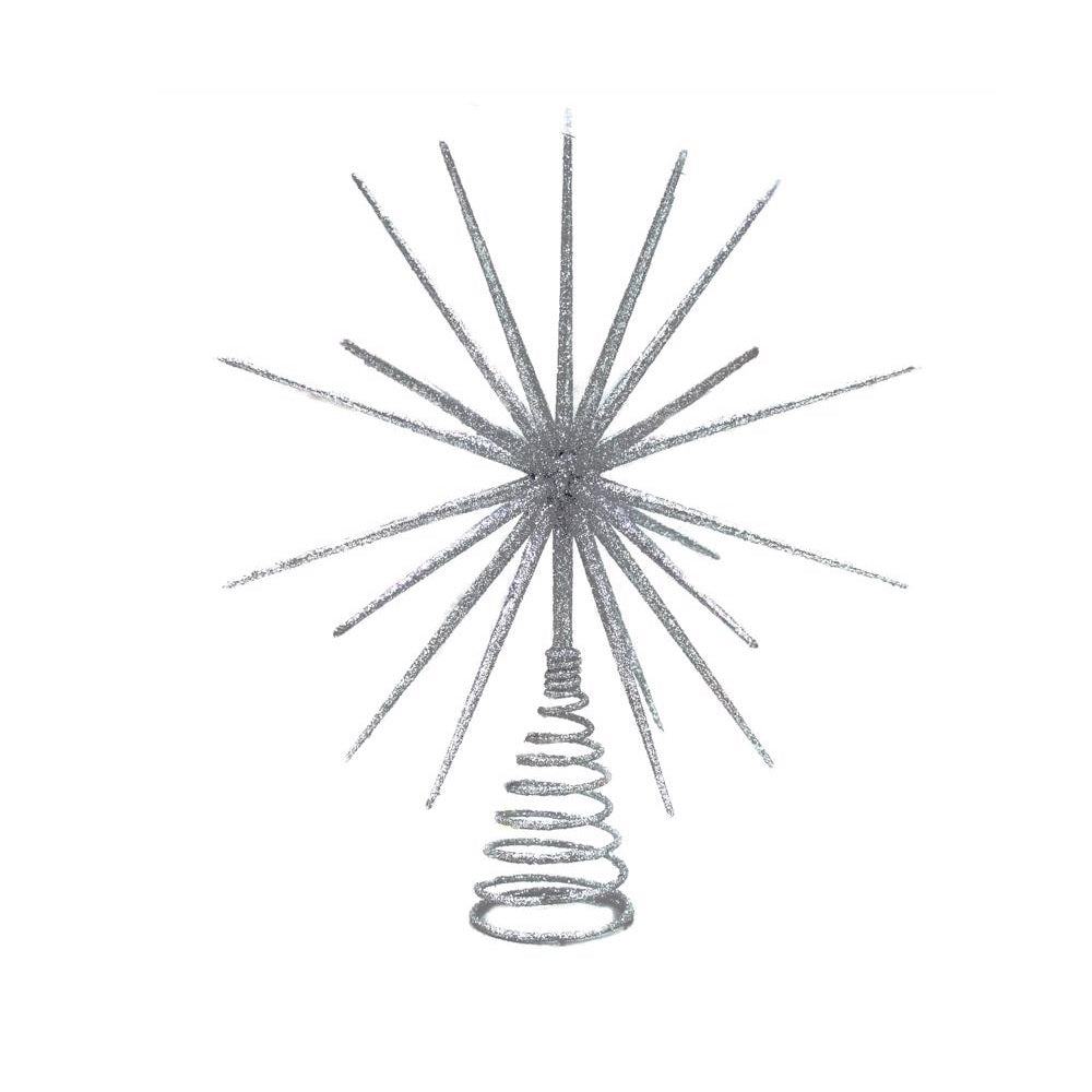 Highlights:Color: SilverDesign: BurstIndoor Decor Type: Tree TopperChristmas Motif: StarLength: 10 inchHeight: 14 inchWidth: 10 inchNumber in Package: