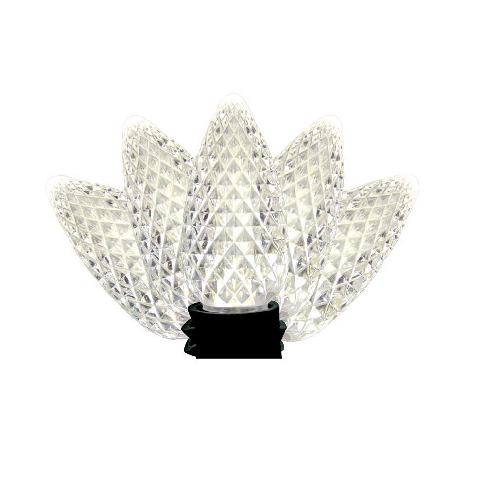 Highlights:Bulb Color: Pure WhiteDesign: FacetedFinish: SparklePower Type: LEDBulb Type: C9Bulb Count: 25Light Type: StringLighted Length: 25 feetLigh