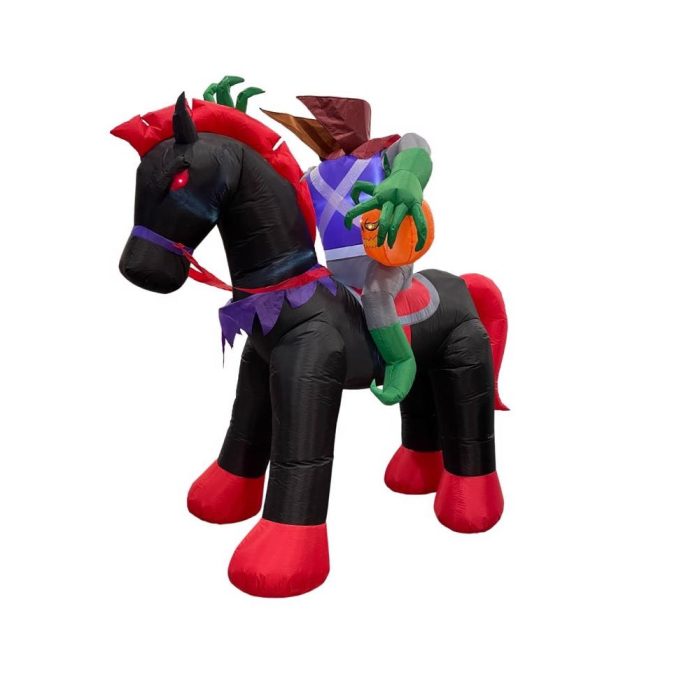 Highlights:Design: Night RiderWidth: 10.63 inchLength: 10.63 inchHeight: 96 inchPower Source: Plug-InEasy set-up, self inflates in secondsLights upCol