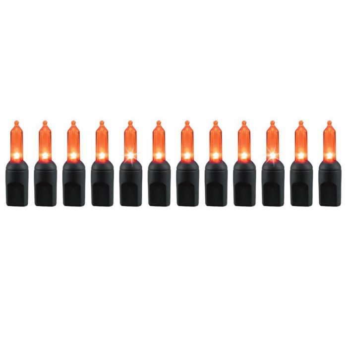 Highlights:Bulb Color: OrangeBulb Count: 100Power Type: LEDDesign: HalloweenWidth: .25 inchLength: 24.75 feetLight Features: TwinklingPower Source: Pl