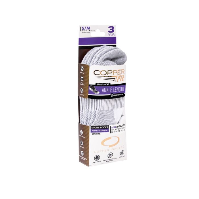 Copper Fit CFSSWHLXL As Seen On TV Unisex Sport Ankle Socks, L/XL