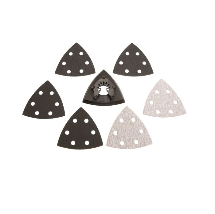 Highlights:Shape: TriangularNumber in Package: 7 pc.Application: SandingPackaging Type: ClamshellIncludes a sanding pad and an assortment of sandpaper