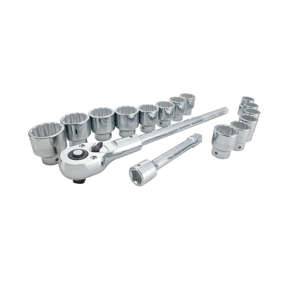Highlights:Drive Size: 3/4 inch driveMetric or SAE: SAEMaterial: Alloy SteelFinish: Polished ChromeNumber of Points: 12 PointNumber in Package: 16 pc.