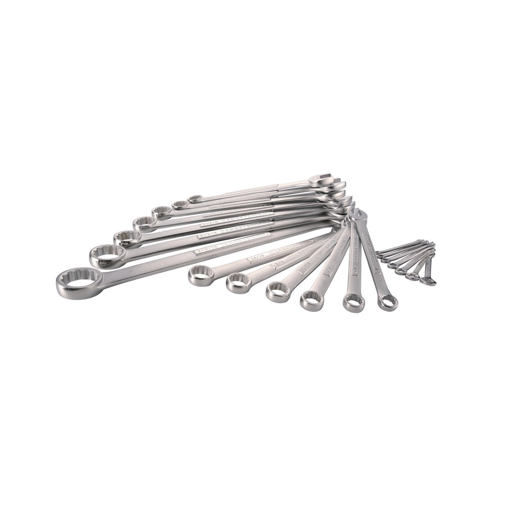 Set includes (7) miniature combo wrenches, SAE – 3/16 inch, 1/4 inch, 9/32 inch, 5/16 inch, 7/32 inch, 3/8 inch, 7/16 inch and (13) combo wrenches, SAE – 1/2 inch, 9/16 inch, 5/8 inch, 11/16 inch, 3/4 inch, 13/16 inch, 7/8 inch, 15/16 inch, 1 inch, 1-1/16 inch, 1-1/8 inch, 1-1/4 inch and 1-5/16 inch