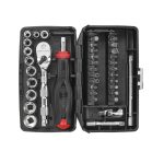 Highlights:Drive Size: 1/4 inch driveMaterial: SteelMetric or SAE: SAENumber of Points: 6 PointProduct Type: Socket and Tool SetNumber in Package: 38